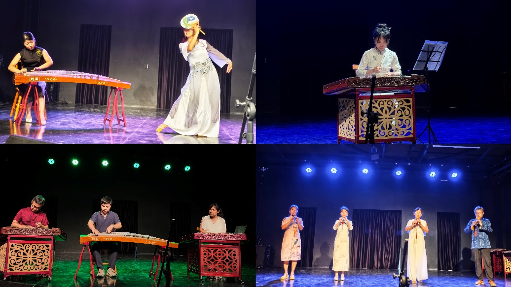 民乐演奏成为亮点,扬琴与古筝合奏《茉莉花》清雅动人,葫芦丝合奏《月光下的凤尾竹》富有民族风情,筝伴舞《青花瓷》融合古典舞韵与审美意象。扬琴二重奏《巴西乐曲串烧》巧妙结合中巴音乐元素,引发观众合唱,体现文化交流的创意与共鸣。